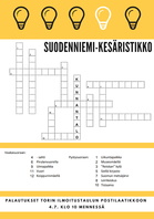 Suodenniemi-ristikossa oli virhe, joka on nyt korjattu. Pahoittelut! Heitä siis vanha versio pois, tulosta ja täytä tämä uusi ja palauta torille 4.7. mennessä! Tavataan siellä! |
